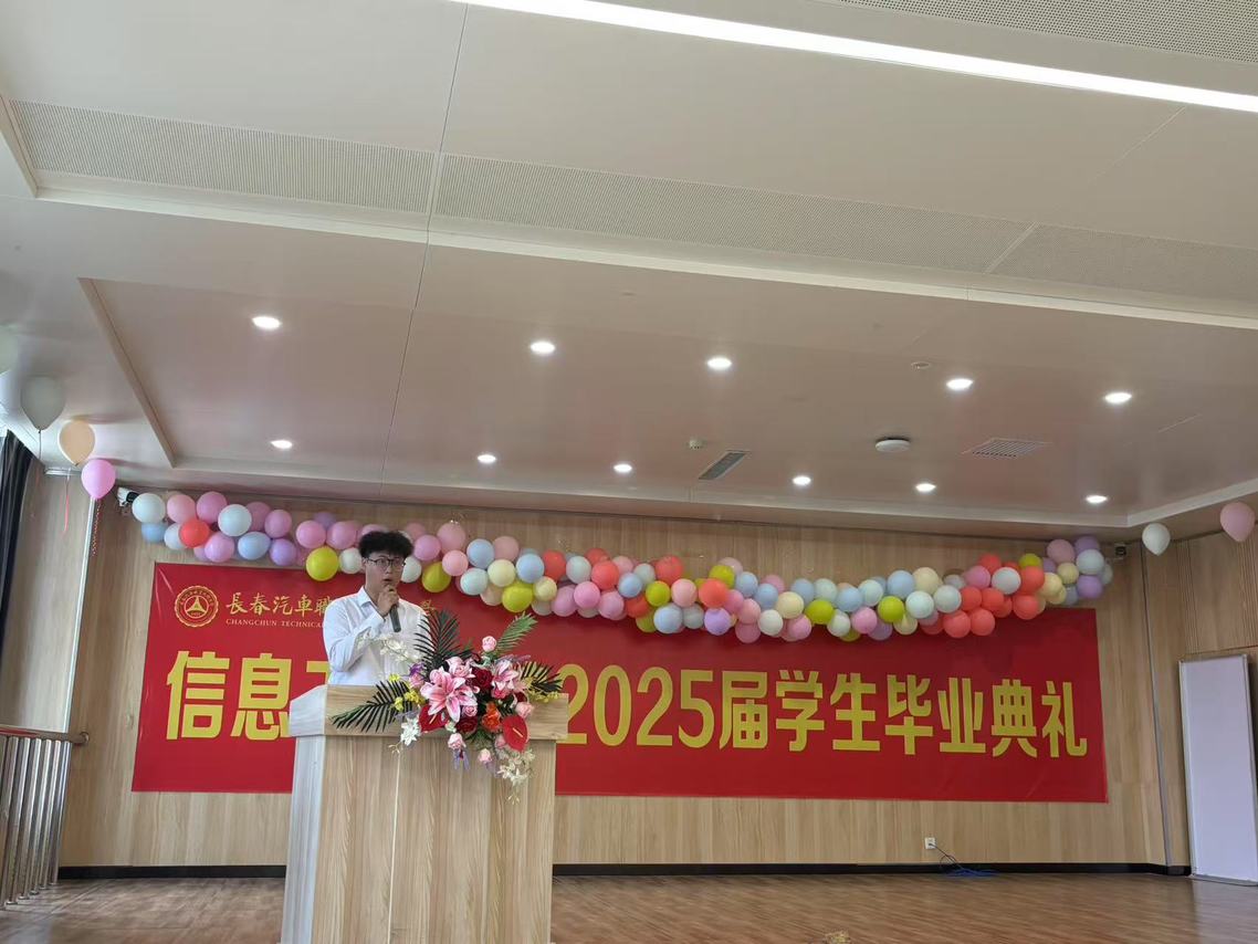 愿有前程可奔赴,亦有青春可回首。6月27日,信息工程学院举行2025届毕业生毕业典礼。学院院长赵良富、副院长杨竹君、党支部副书记王辉、团总支书记侯爽、学生公寓楼长、全体毕业班班主任及教师代表出席典礼送别2025届毕业生。典礼由辅导员郭延慧主持。