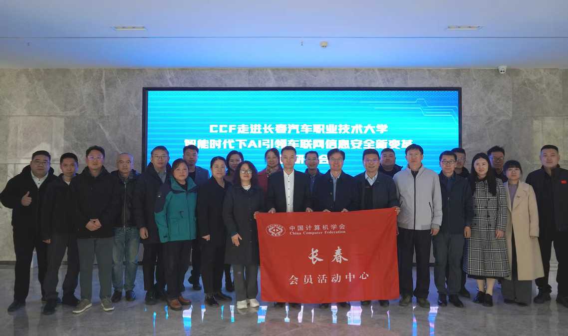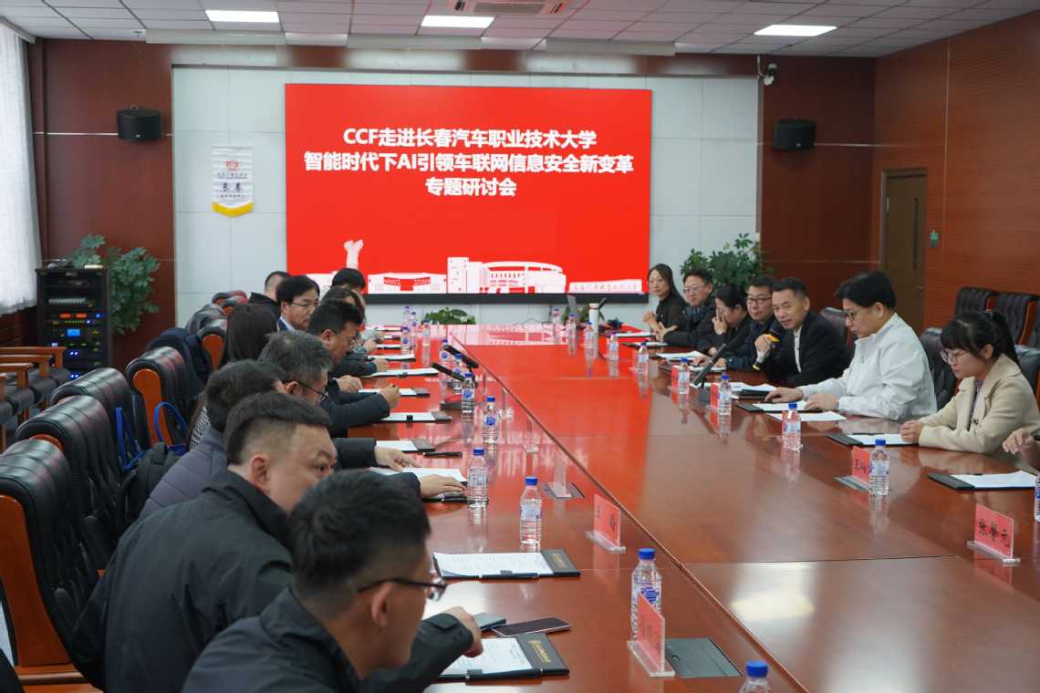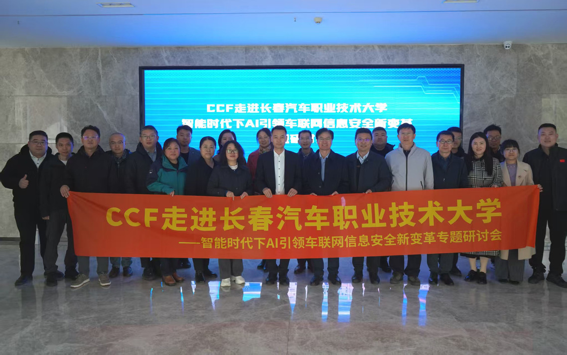 2025 年 10 月 18 日,由中国计算机学会主办,CCF 长春分部与长春汽车职业技术大学联合承办的“智能时代下 AI 引领车联网信息安全新变革”专题研讨会,在长春汽车职业技术大学培训学院 109 会议室顺利召开。来自吉林大学车翔玖、长春大学赵剑、东北师范大学高婷和王晗、长春职业技术大学迟恩宇、吉林农业大学曹丽英、吉林警察学院王洪革、吉林师范大学赵靖华、吉林建筑科技学院高晓佳、吉林财经大学徐劭斌等多所高校的专家学者,联想集团、海诚科技、北京天融信等企业代表,以及信息工程学院、汽车工程学院等相关院长、专业负责人齐聚一堂,共探车联网信息安全领域发展与人才培养新路径。